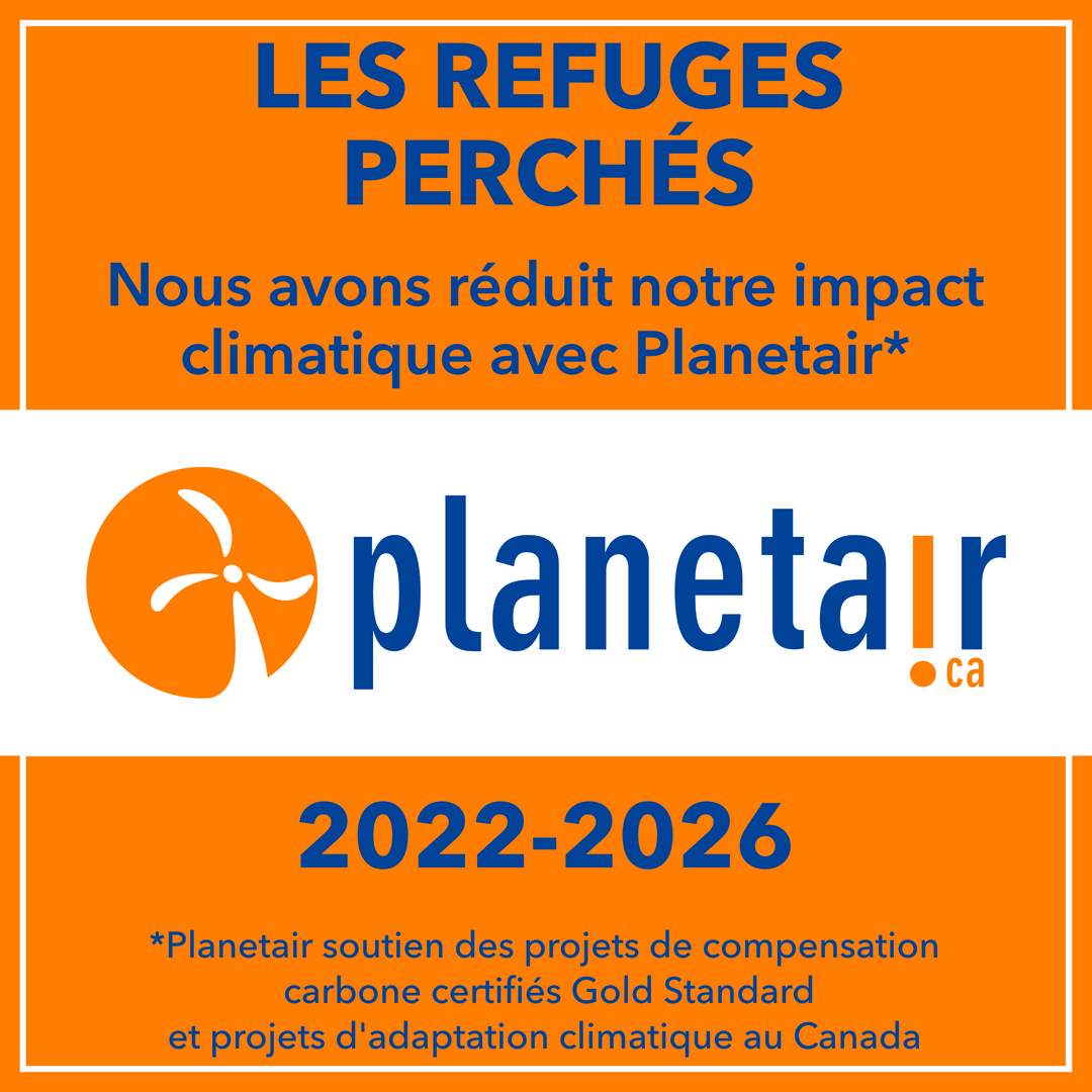 Les Refuges Perchés is proud to practice “Leave No Trace Canada” principles for responsible outdoor recreation, and we strongly encourage all our guests to enjoy the site with an appreciation and respect for nature and minimal impact on the natural environment. Several practices have been put in place :